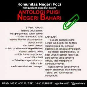 para penyair di seluruh Indonesia untuk bergabung dalam antologi Dari Negeri